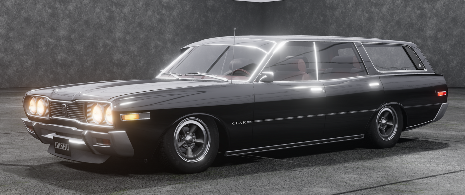 Ibishu Claria 1976 года выпуска — заднеприводный универсал с жесткой крышей, выпускавшийся в Японии с 1976 года и оснащенный двигателями Ibishu C-серии объемом 2,4 л/C24 и 2,6 л/C26. На заводе было доступно множество комплектаций: от GS 2400, оснащенного стандартными функциями и колпаками, до GTz 2600, который был оснащен карбюратором Brewer C26 с уникальной комбинацией красных и белых тонких полос, до Luxe 2600 Clari-Matic. оснащен роскошным салоном для обеспечения комфорта и коробкой передач Clari-Matic, чтобы сделать вождение максимально приятным. За пределами завода Claria обычно строилась для дрифта и автомобильных шоу, редко строилась для трековых гонок.