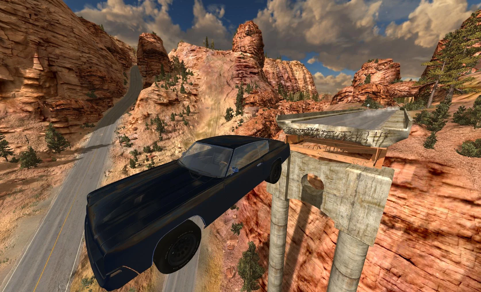История такова: это дикое место искали для создания экстремальной трассы для экстремальных автомобилей и проведения безумных соревнований. Единственным доступом к этому месту был небольшой аэродром. Но соревнования были прекращены, и трасса была заброшена из-за слишком большого количества смертельных случаев во время гонок. И забудьте о маленьких двигателях и короткой подвеске для езды по ней!