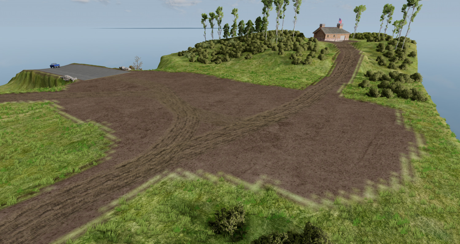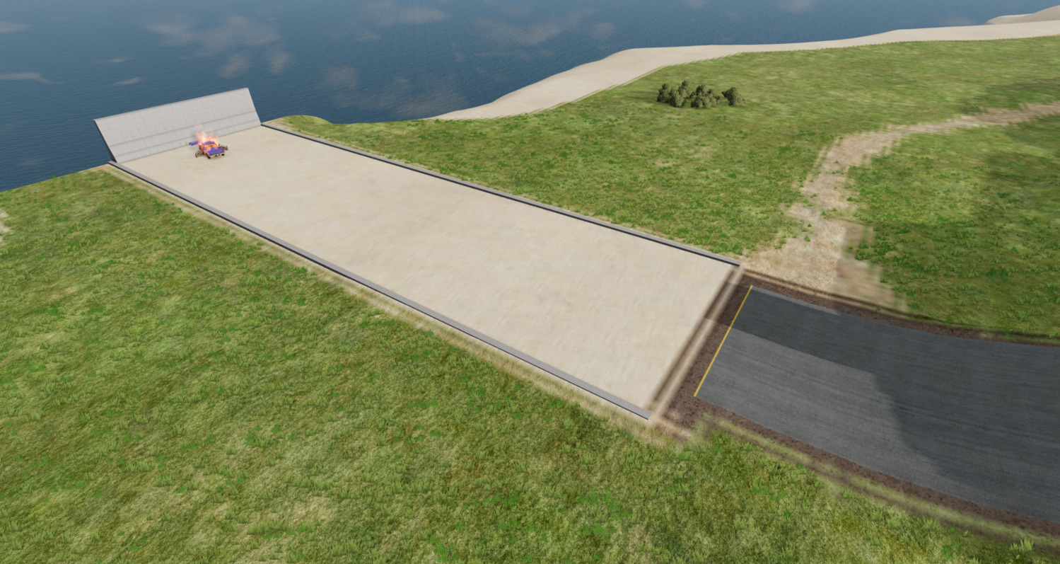 Это небольшая и простая карта — одна большая гора на острове прямоугольной формы посреди ничего. Вы можете запустить автомобили вниз или попытаться подняться на нее.