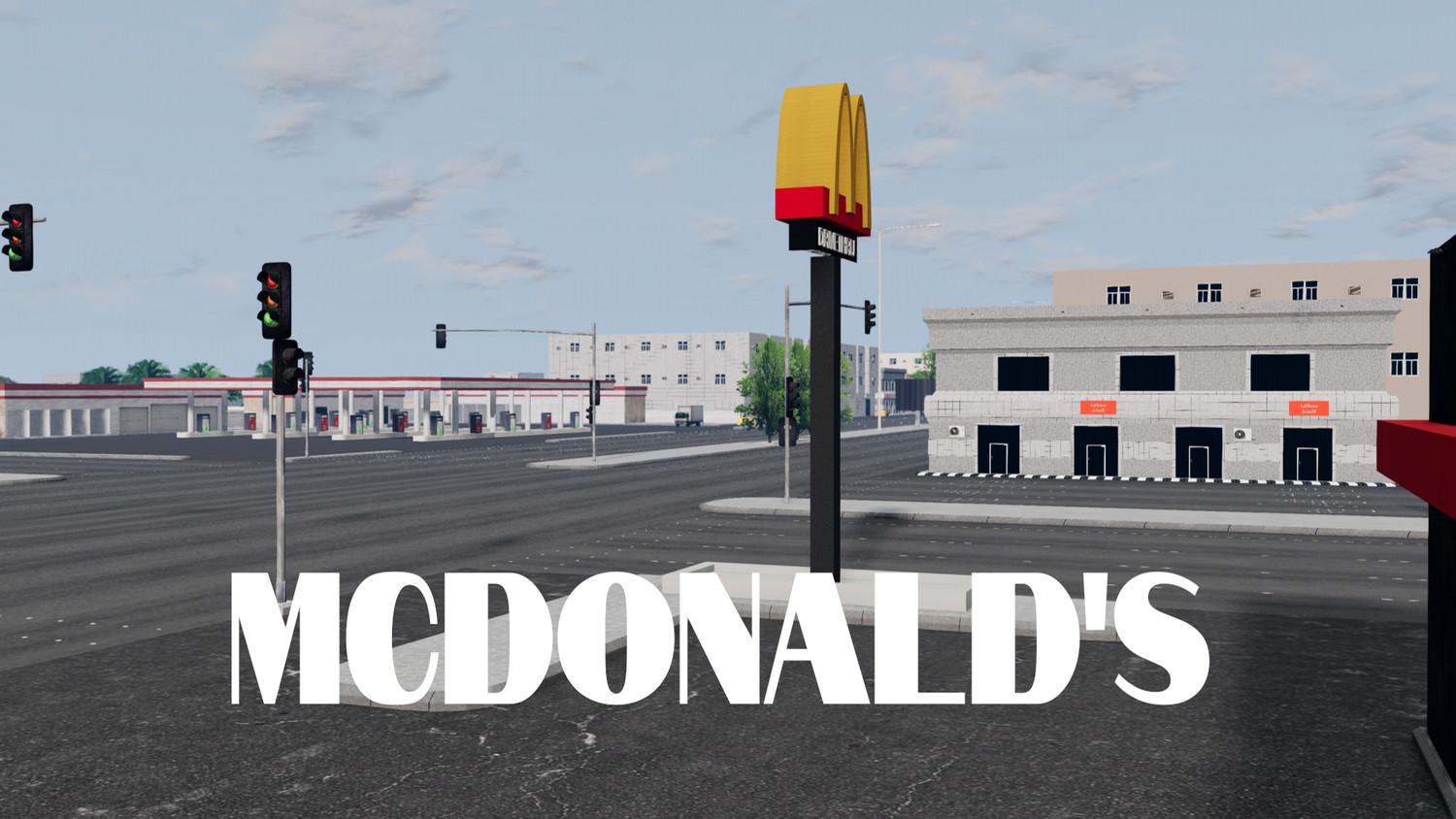 Конверт из Assetto Corsa. Небольшой городок и очень длинное прямое шоссе.