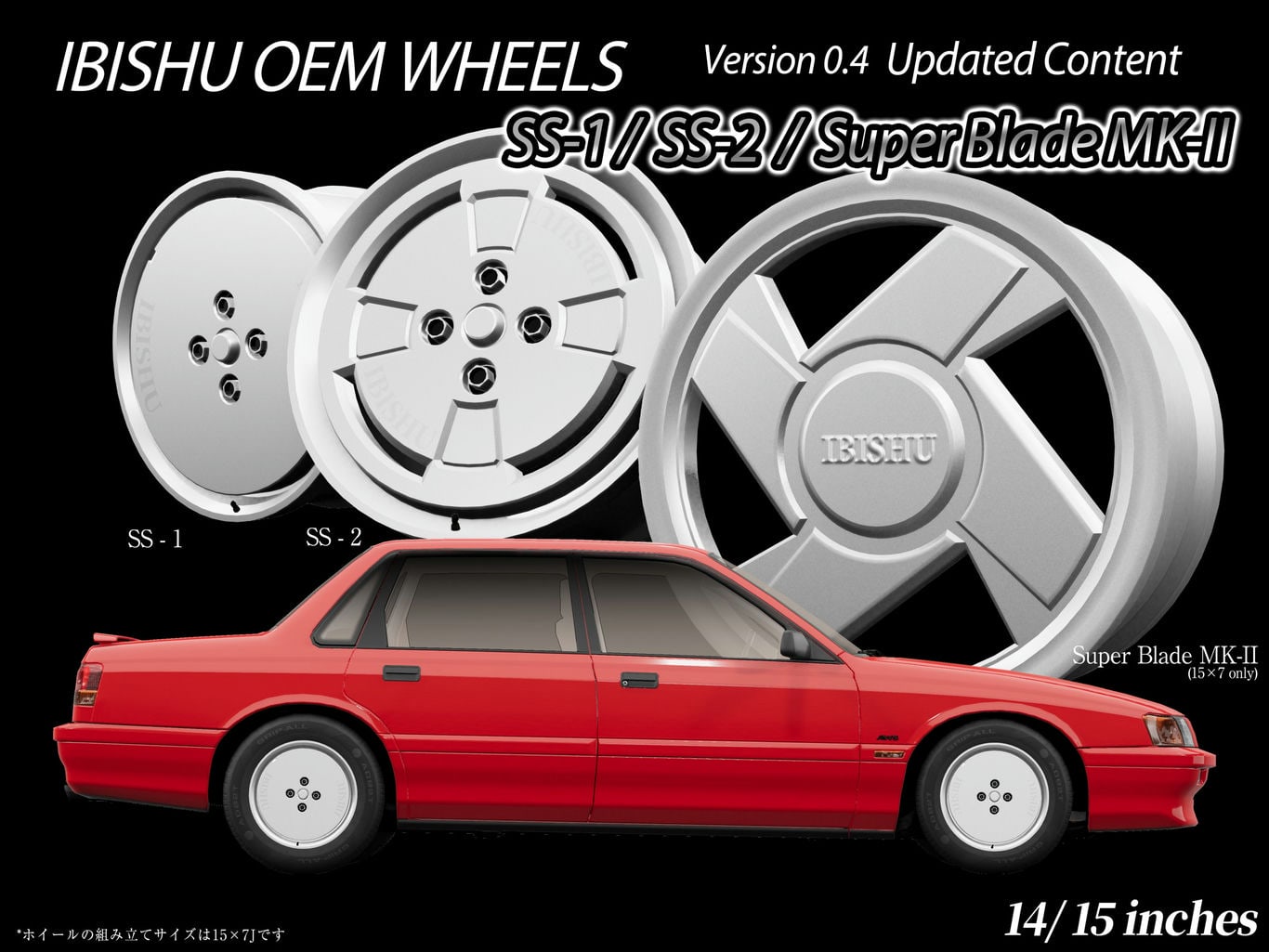 Диски доступны в размерах 14 и 15 дюймов. Возможно, позже добавят 13 дюймов, но это ещё предстоит учесть. Бренд дисков в игре — Wangan и Ibishu. Диски, разработанные для японских малолитражных автомобилей, таких как Covet и Miramar, включая различные растянутые шины. Надеемся этот пак поможет вам в тюнинге вашего JDM-автомобиля.