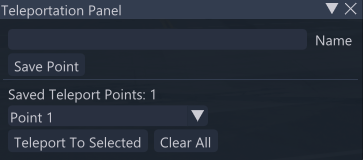 Просто откройте панель, введите имя (или используйте имя по умолчанию) и сохраните свое текущее местоположение. Когда будет нужно, выберите точку и моментально телепортируйтесь обратно.